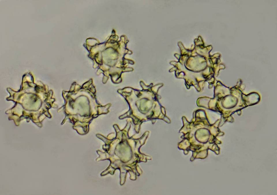These chlamydospores have thick walls that prevent them from drying out, and they are shaped like underwater mines. They’re designed to persist dormant in the environment for long periods of time. The fungus will also produce sexual spores, albeit not nearly as many, through the gill-like structures under the powdery cap.